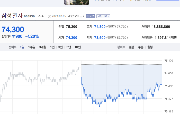 삼성전자는 대한민국을 대표하는 글로벌 기업으로, 전자제품, 반도체, 통신장비 등 다양한 분야에서 세계적인 성과를 거두고 있는 기업입니다. 삼성전자의 주식은 한국 증권시장에서 가장 큰 비중을 차지하고 있으며, 꾸준한 성장세를 보여주고 있습니다. 최근에는 5G 통신, 인공지능, 자율주행 등의 첨단 기술에 대한 투자와 개발을 통해 미래 성장동력을 확보하고 있습니다. 또한, 글로벌 시장에서의 경쟁력도 높여가고 있으며, 수익성과 주가 성과도 꾸준히 향상되고 있습니다. 앞으로도 삼성전자는 혁신적인 기술과 창의적인 아이디어를 바탕으로 세계 시장에서 선도적인 위치를 유지할 것으로 기대됩니다.