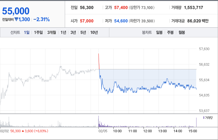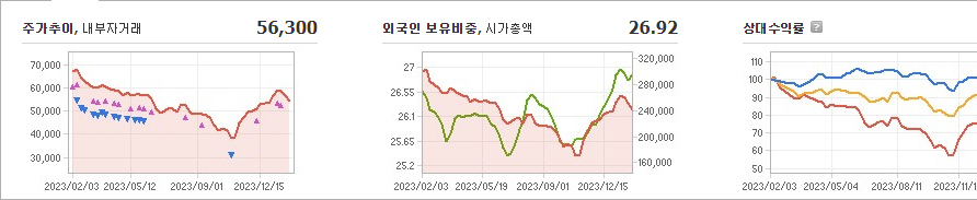 카카오의 현재 주가는 56,300원이며, 전일 대비 -2.76원의 하락을 보였습니다. 주주 현황을 살펴보면 김범수(외 92인)이 지분의 24.14%를 소유하고 있습니다. 카카오는 인터넷 서비스 기업으로, 현재 주가는 56,300원입니다. 시가 총액은 24조 4,667억 원이며, 발행 주식 수는 444,849,878주입니다. 외국인 보유 비중은 26.92%이며, 거래량은 2,428,683주를 기록했습니다. 매출액은 59,437억 원입니다.