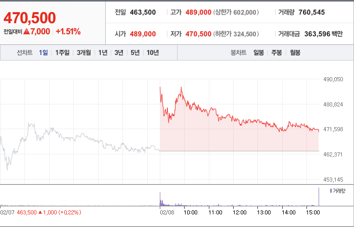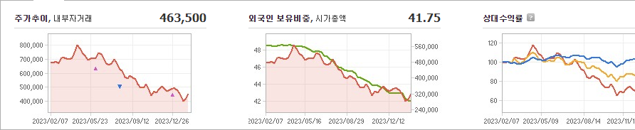 LG화학의 현재 주가는 463,500원이며 전일 대비 -3.94원 하락했습니다. 주주 현황을 살펴보면 LG(외 2인)이 지분의 33.37%를 소유하고 있습니다. LG화학은 화학 기업으로, 장중 주가는 463,500원입니다. 시가 총액은 33조 2,137억 원이며 발행 주식수는 70,592,343주입니다. 외국인 보유 비중은 41.75%이며, 장중 거래량은 363,161주입니다. 매출액은 421,150억 원을 기록했습니다.
