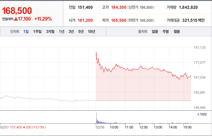 레인보우로보틱스 주가