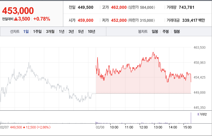 포스코홀딩스 현재 주가는 449,500원으로 전일 대비 -6.35원 하락하였습니다. BlackRock Fund Advisors(외 13명)는 포스코홀딩스 지분 10.28%를 보유하고 있습니다. 포스코홀딩스는 금속 및 광물 전문 기업으로, 종가 기준 주가는 449,500원이다. 포스코홀딩스의 시가총액은 38조 3,108억원, 발행주식총수는 84,571,230주이다. 외국인 지분율은 27.40%이며, 당일 거래량은 753,430건입니다. 매출 5,846억 3100만원을 달성하였습니다.