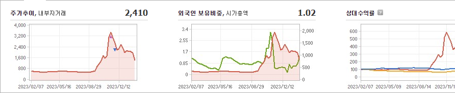 씨씨에스의 현재 주가는 2,410원이고, 전일 대비 -31.34원 하락한 상태입니다. 주주현황을 살펴보면 유인무(외 2인)이 지분의 8.33%를 소유하고 있습니다. 씨씨에스는 미디어 기업으로, 현재 주가는 2,410원입니다. 시가 총액은 1538억 원이며 발행 주식수는 56,025,056주입니다. 외국인 보유 비중은 1.02%이고, 장중 거래량은 55,541,781주를 기록했습니다. 매출액은 144억 원입니다.