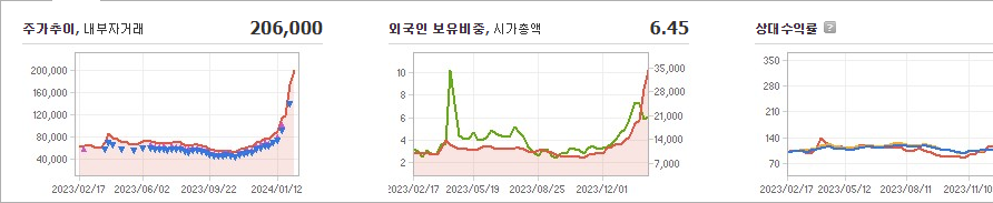 엔켐의 현재 주가는 206,000원이며 전일 대비 원의 모습을 보이고 있습니다. 주주현황을 살펴보면 오정강(외 3인)이 지분 22.87%를 소유하고 있습니다. 엔켐은 전자 장비 및 기기 기업으로, 장중 기준으로 주가는 206,000원입니다. 시가 총액은 4조5737억 원이며 발행 주식수는 17,178,130주입니다. 외국인 보유 비중은 6.45%이며 장중 거래량은 2,095,486주를 기록했습니다. 또한, 매출액은 3,729억 원을 달성했습니다.