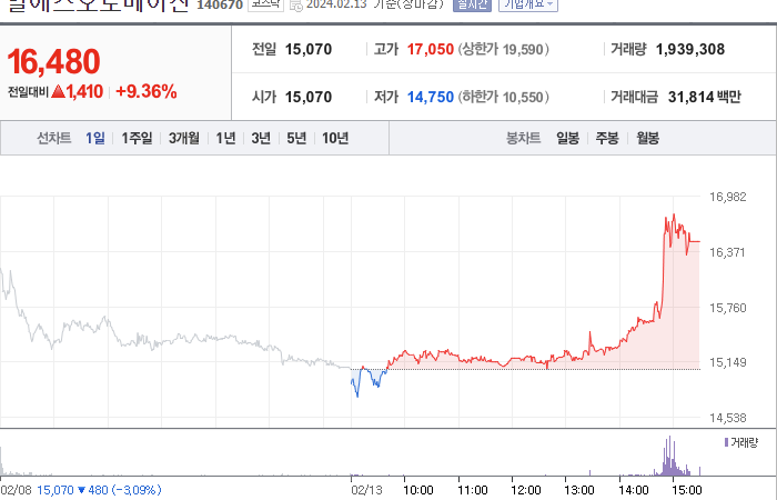 알에스오토메이션은 현재 주가가 15,070원이고, 전일 대비 -480원의 하락을 보이고 있습니다. 주주현황을 살펴보면, 강덕현(외 3인)이 지분의 29.72%를 소유하고 있습니다. 이 회사는 기계 기업으로, 현재 주식 시장에서의 주가는 15,070원입니다. 시가 총액은 1533억 원이며, 발행 주식수는 9,303,140주입니다. 외국인 보유 비중은 1.03%이며, 장중 거래량은 798,478주를 기록했습니다. 또한, 매출액은 615억 원을 달성했습니다.