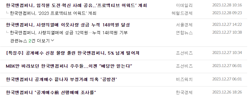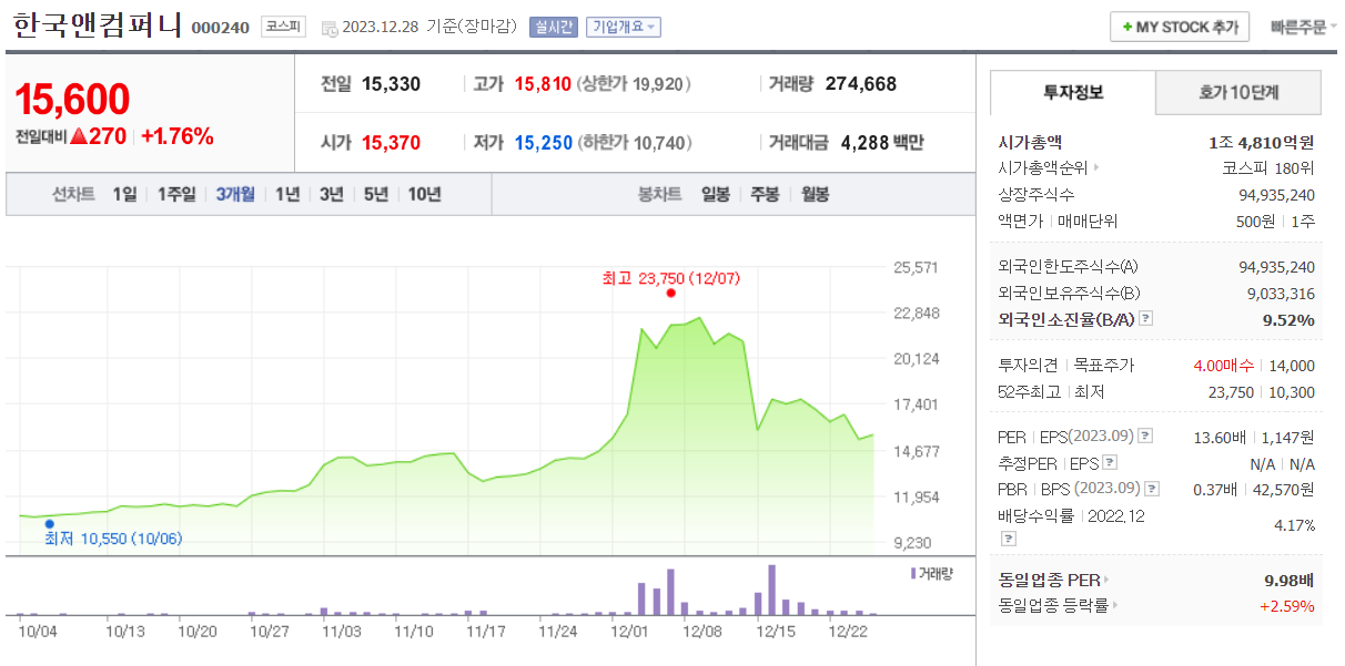 이 글에서는 한국앤컴퍼니 주가 전망과 목표 주가, 기업 정보에 대해서 설명합니다. 주식 투자의 핵심은 현재의 기업 가치보다는 미래의 가치를 예측하며 먼저 대응하는 것입니다. 투자 대상을 결정하기 위해 먼저 현재 기업 상태와 수치를 검토해야 합니다. 한국앤컴퍼니 주식의 주요 현황과 투자 정보를 확인하시고 주식 투자에 유용한 정보들을 한 곳에 정리해두었으니 투자에 도움 받으시길 바랍니다..