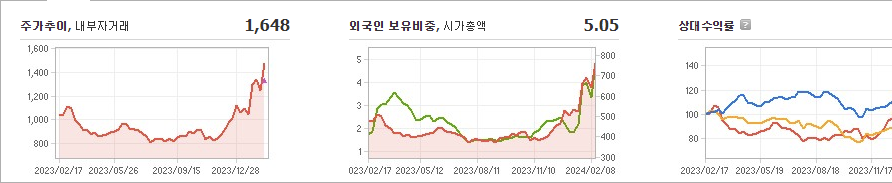 리노스의 현재 주가는 1,648원이며, 전일 대비 원의 모습을 보이고 있습니다. 주주현황을 살펴보면 폴라리스우노(외 1인)이 지분의 26.99%를 소유하고 있습니다. 리노스는 IT 서비스 기업으로, 장중 기준으로 주가는 1,648원입니다. 시가 총액은 850억 원이며, 발행 주식수는 51,605,102주입니다. 외국인 보유 비중은 5.05%이며, 장중 거래량은 9,937,756주를 기록했습니다. 또한, 리노스는 매출액으로 414억 원을 달성했습니다.