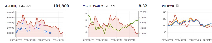 나노신소재의 현재 주가는 104,900원이며 전일 대비 -2.87원의 변동을 보이고 있습니다. 주주현황을 살펴보면 박장우(외 8인)이 지분의 23.98%를 소유하고 있습니다. 나노신소재는 화학 기업으로, 장중 기준으로 주가는 104,900원입니다. 시가 총액은 1조4713억 원이며 발행 주식수는 12,159,878주입니다. 외국인 보유 비중은 8.32%이며 장중 거래량은 112,286주를 기록했습니다. 또한, 매출액은 617억 원을 달성했습니다.