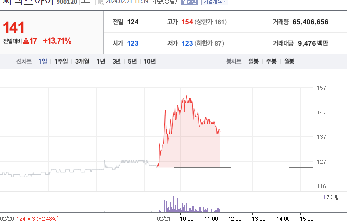 씨엑스아이의 현재 주가는 124원이며 전일 대비 -11.43원으로 하락하였습니다. 주주현황을 살펴보면, 이 지분은 9.07%를 소유하고 있습니다. 씨엑스아이는 식료품 기업으로, 장중 기준 주가는 124원입니다. 시가 총액은 404억 원이며 발행 주식수는 288,232,166주입니다. 외국인 보유 비중은 0.00%이며, 장중 거래량은 2,383,109주를 기록하였습니다. 또한, 매출액은 198억 원을 달성하였습니다.