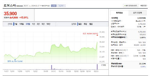 이 글에서는 로보스타 주가 전망과 목표 주가, 기업 정보에 대해서 설명합니다. 주식 시장에서 중요한 것은 미래의 기업 가치를 예측하고 선제적으로 움직이는 것입니다. 투자할 종목을 고르기 전에 현재 기업의 현황과 데이터를 확인하는 것이 필요합니다. 로보스타 주식의 주요 현황과 투자 정보를 확인하시고 주식 투자에 도움이 되는 자료를 모아두었으니 참고하셔서 투자에 도움을 받으시길 바랍니다..