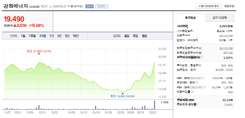 강원에너지 주가 분석