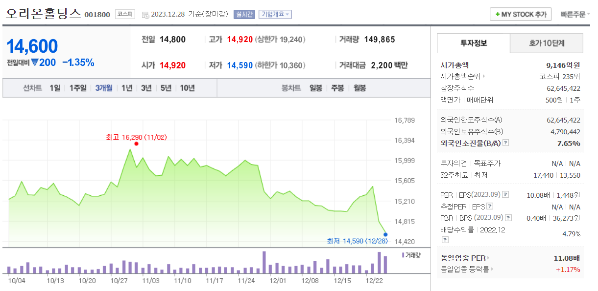 이 글에서는 오리온홀딩스 주가 전망과 목표 주가, 기업 정보에 대해서 설명합니다. 주식 투자에서 핵심은 미래의 기업 가치를 예상하고 선제적으로 움직이는 것입니다. 투자 대상을 결정하기 전에 현재 기업의 현황과 수치를 검토하는 것이 필요합니다. 오리온홀딩스 주식의 주요 현황과 투자 정보를 확인하시고 주식 투자를 고민하고 계시다면 유용한 정보들을 모아 놓은 자료를 확인해보세요..