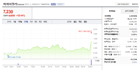 피제이전자 주가