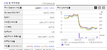 협진 현재 주가는 1,059원이며 전일 대비 -110원의 모습을 보이고 있습니다. 협진의 주주현황을 살펴보면 씨아이테크(외 2인)이 지분 27.18%를 소유하고 있습니다. 협진는 기계 기업으로 장중 기준으로 주가는 1,059원 입니다. 협진의 시가 총액은 389억 원이며 발행 주식수는 11.81주 입니다. 외국인 보유 비중은 1,651,169% 이며 장중 거래량은 34,611,984를 기록했습니다. 매출액은 59억 원, 영업이익은 9억 원을 달성했습니다. EPS는 없음원이며 협진 주식 배당수익률은 % 입니다.