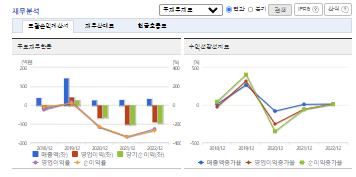 -2023년 9월 전년동기 대비 별도기준 매출액은 14.7% 감소, 영업손실은 8.7% 증가, 당기순손실은 2.4% 증가. 매출액이 감소한 이유는 전년동기 대비 상품의 매출액은 증가했으나, 용역서비스 매출이 더 큰 폭으로 감소했기 때문임. 매출 규모보다 매출원가가 크게 감소했는데, 상품원가는 전년동기 대비 비슷하나 용역매출원가가 큰 폭으로 감소하여 영업이익이 상대적으로 소폭 감소함.
