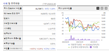 대양전기공업 현재 주가는 11,720원이며 전일 대비 -30원의 모습을 보이고 있습니다. 대양전기공업의 주주현황을 살펴보면 서영우(외 3인)이 지분 60.08%를 소유하고 있습니다. 대양전기공업는 조선 기업으로 장중 기준으로 주가는 11,720원 입니다. 대양전기공업의 시가 총액은 1204억 원이며 발행 주식수는 0.51주 입니다. 외국인 보유 비중은 6,674% 이며 장중 거래량은 9,567,333를 기록했습니다. 매출액은 1,043억 원, 영업이익은 -99억 원을 달성했습니다. EPS는 없음원이며 대양전기공업 주식 배당수익률은 0.65% 입니다.