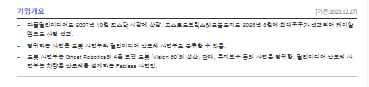 -2023년 9월 연결기준 매출 실적은 9,197,190,111원, 영업이익은 3,433,654,982원의 적자, 당기순이익은 9,387,002,648원 적자를 기록함. 매출원가와 판관비가 매출액을 초과하면서 영업이익 적자, 법인세환급분을 포함한 당기순이익도 적자를 기록. 신규 사업 분야로 로봇 산업에 진출하기 위해 준비하고 있음. 로봇 관련 부품 생산 및 조립을 위한 제조 라인을 구축하고 양산을 위한 제반 절차를 진행중임.