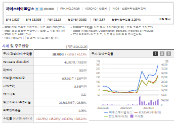 피에스케이홀딩스 현재 주가는 38,700원이며 전일 대비 원의 모습을 보이고 있습니다. 피에스케이홀딩스의 주주현황을 살펴보면 박경수(외 19인)이 지분 71.34%를 소유하고 있습니다. 피에스케이홀딩스는 반도체 및 관련장비 기업으로 장중 기준으로 주가는 38,700원 입니다. 피에스케이홀딩스의 시가 총액은 8787억 원이며 발행 주식수는 0.95주 입니다. 외국인 보유 비중은 605,021% 이며 장중 거래량은 21,562,395를 기록했습니다. 매출액은 552억 원, 영업이익은 169억 원을 달성했습니다. EPS는 2,180원이며 피에스케이홀딩스 주식 배당수익률은 4,077,322% 입니다.