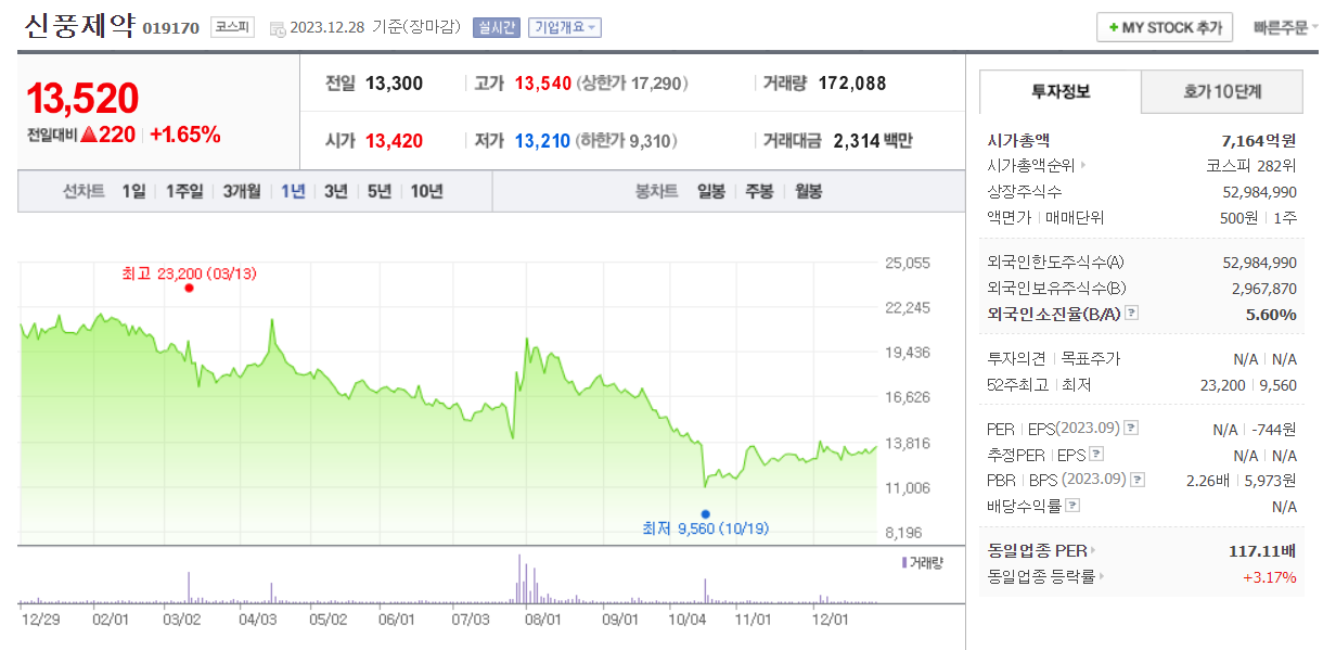 신풍제약 주식 결론