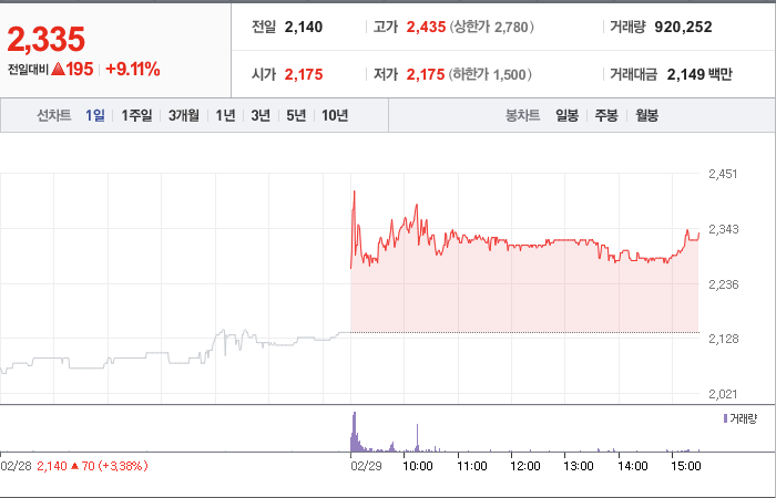 동방선기 주가