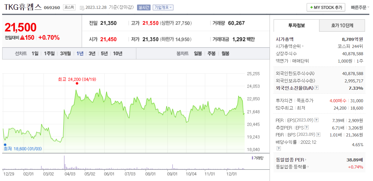TKG휴켐스 주가 분석