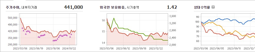BYC의 현재 주가는 441,000원이며 전일 대비 -21.11원의 변동을 보였습니다. 주주 구성을 살펴보면 신한에디피스(외 14인)이 지분의 68.51%를 소유하고 있습니다. BYC는 주로 섬유 및 의복 분야에서 활동하는 기업으로, 현재 주식의 시가 총액은 3076억 원이며 발행 주식수는 624,615주입니다. 외국인 보유 비중은 1.42%이며, 장중 거래량은 441주를 기록했습니다. 또한, BYC는 최근 매출액으로 1,187억 원을 달성했습니다.