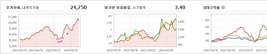 가온전선은 전기장비 기업으로, 현재 주가는 24,750원이고 전일 대비 원의 모습을 보이고 있습니다. 가온전선의 주주현황을 살펴보면, 이 지분은 48.75%를 소유하고 있습니다. 시가 총액은 2016억 원이며 발행 주식수는 7,357,946주입니다. 외국인 보유 비중은 3.40%이며 장중 거래량은 143,015주를 기록했습니다. 또한, 가온전선은 매출액으로 11,261억 원을 달성했습니다.