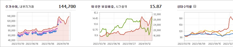 현재 LIG넥스원의 주가는 144,700원이며 전일 대비 원의 모습을 보이고 있습니다. 주주현황을 살펴보면 엘아이지(외 11인)이 지분 42.54%를 소유하고 있습니다. LIG넥스원은 상업서비스 기업으로, 장중 기준으로 주가는 144,700원입니다. 시가 총액은 3조 3506억 원이며 발행 주식수는 22,000,000주입니다. 외국인 보유 비중은 15.87%이며 장중 거래량은 301,058주를 기록했습니다. 매출액은 16,285억 원을 달성했습니다.