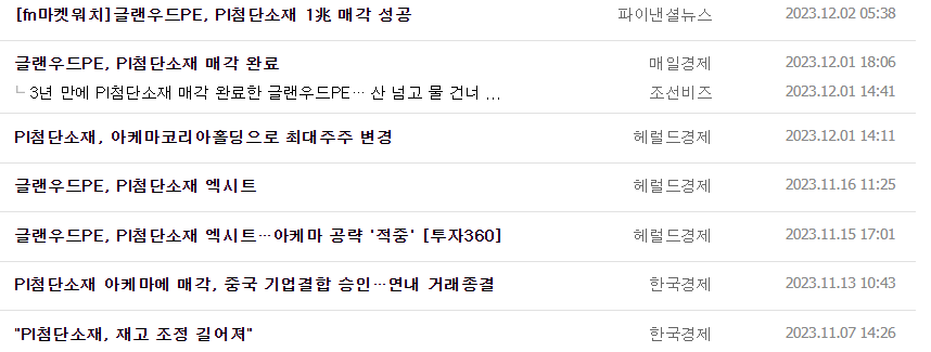 이 글에서는 PI첨단소재 주가 전망과 목표 주가, 기업 정보에 대해서 설명합니다. 주식 투자의 핵심은 현재의 기업 가치보다는 미래의 가치를 예측하며 먼저 대응하는 것입니다. 투자 대상을 결정하기 위해 먼저 현재 기업 상태와 수치를 검토해야 합니다. PI첨단소재 주식의 주요 현황과 투자 정보를 확인하시고 주식 투자에 유용한 자료들을 정리하여 제공하오니 투자에 도움 받으시길 추천합니다..