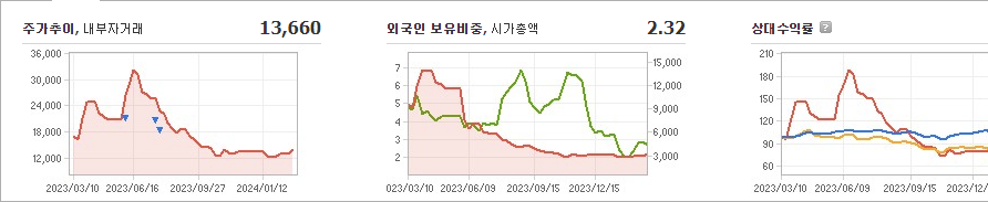 이수화학의 현재 주가는 13,660원이며 전일 대비 -370원 하락하였습니다. 주주현황을 살펴보면 이수(외 7인)이 지분의 27.83%를 소유하고 있습니다. 이수화학은 화학 기업으로, 현재 주가는 13,660원입니다. 시가 총액은 3,252억 원이며, 발행 주식수는 22,722,739주입니다. 외국인 보유 비중은 2.32%이며, 장중 거래량은 504,971주를 기록했습니다. 또한, 이수화학은 매출액으로 16,143억 원을 달성했습니다.