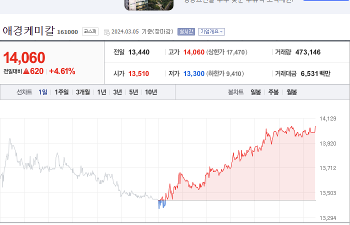 이 글은 애경케미칼 주식의 전망과 목표 주가, 기업 정보에 대해 설명합니다. 주식 투자에서 가장 중요한 것은 미래의 기업 가치를 예측하고 선제적으로 움직이는 것입니다. 따라서 투자 대상을 결정하기 전에 현재 기업의 상황과 수치를 검토하는 것이 필요합니다. 저희는 애경케미칼 주식의 주요 현황과 투자 정보를 확인하고, 투자에 도움이 될 자료들을 모아두었습니다. 이 자료를 끝까지 읽어보시고 투자에 도움을 받으시길 바랍니다.
