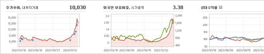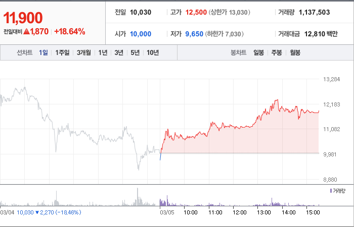 해성티피씨의 현재 주가는 10,030원이고, 전일 대비로 -2,270원 하락한 상태입니다. 주주현황을 살펴보면 티피씨(외 2인)이 지분의 34.34%를 소유하고 있습니다. 해성티피씨는 기계 기업으로, 현재 주가는 10,030원입니다. 시가 총액은 1272억 원이며, 발행 주식수는 10,689,741주입니다. 외국인 보유 비중은 3.38%이고, 장중 거래량은 1,874,478주를 기록했습니다. 매출액은 104억 원입니다.