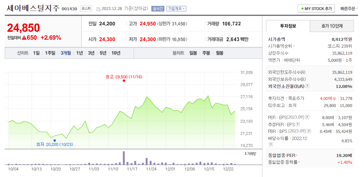 세아베스틸지주 주가 분석