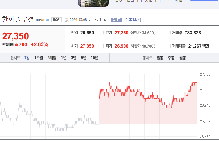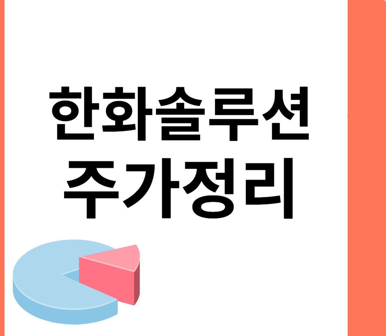 이 글은 한화솔루션 주식에 대한 전망과 목표 주가, 기업 정보에 대해 설명합니다. 주식 투자의 핵심은 미래의 기업 가치를 예측하고 선제적으로 움직이는 것입니다. 투자 대상을 결정하기 전에 현재 기업의 상황과 수치를 검토하는 것이 필요합니다. 한화솔루션 주식의 주요 상황과 투자 정보를 확인하고 주식 투자에 도움이 될 자료들을 모아두었으니 끝까지 읽어보시고 투자에 도움을 받으시길 바랍니다.