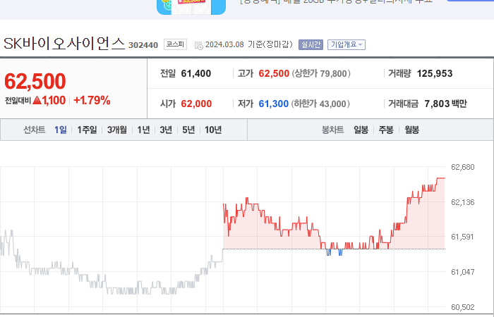 SK바이오사이언스 주가