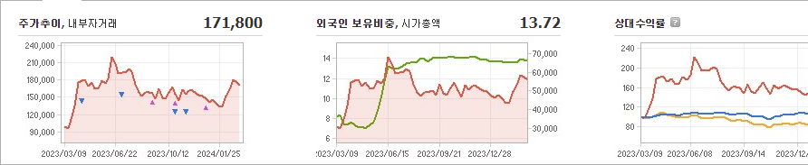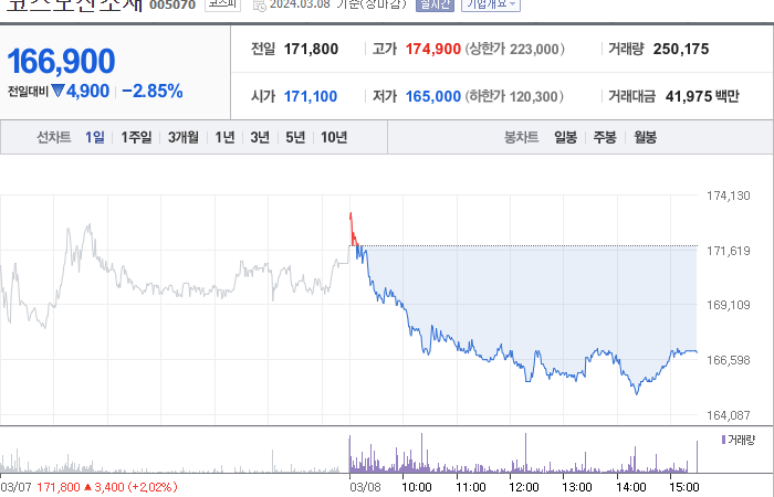 코스모신소재의 현재 주가는 171,800원이며 전일 대비 원의 모습을 보이고 있습니다. 주주현황을 살펴보면 코스모화학(외 7인)이 지분 29.28%를 소유하고 있습니다. 코스모신소재는 화학 기업으로, 현재 주가는 171,800원입니다. 시가 총액은 5조4260억 원이며 발행 주식수는 32,510,756주입니다. 외국인 보유 비중은 13.72%이며 장중 거래량은 128,849를 기록했습니다. 매출액은 5,408억 원입니다.