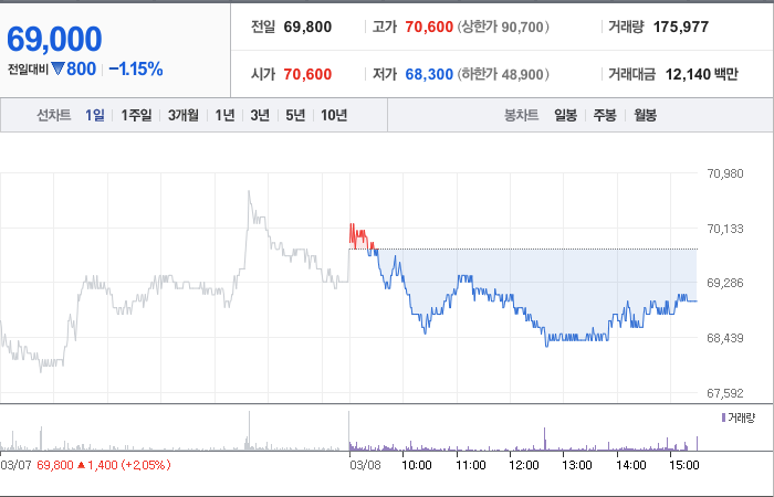 HD현대의 현재 주가는 69,800원이며 전일 대비 -2.51원으로 하락하였습니다. HD현대의 대주주는 정몽준(외 9인)으로, 지분의 36.33%를 소유하고 있습니다. HD현대는 석유 및 가스 기업으로 분류되며, 현재 주가는 69,800원입니다. 시가 총액은 5조4505억 원이며, 발행 주식수는 78,993,085주입니다. 외국인 보유 비중은 16.54%이며, 장중 거래량은 212,147주입니다. 또한, HD현대의 매출액은 446,185억 원입니다.
