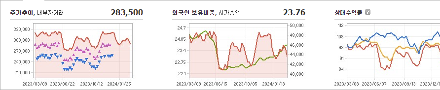 CJ제일제당의 현재 주가는 283,500원이며 전일 대비 -6,000원의 변동을 보이고 있습니다. 주주현황을 살펴보면 CJ(외 8인)이 지분의 45.51%를 소유하고 있습니다. CJ제일제당은 식료품 기업으로, 현재 주가는 283,500원입니다. 시가 총액은 4조3281억 원이며 발행 주식수는 15,054,186주입니다. 외국인 보유 비중은 23.76%이며, 장중 거래량은 47,103주를 기록했습니다. 또한, 매출액은 217,340억 원을 달성했습니다.