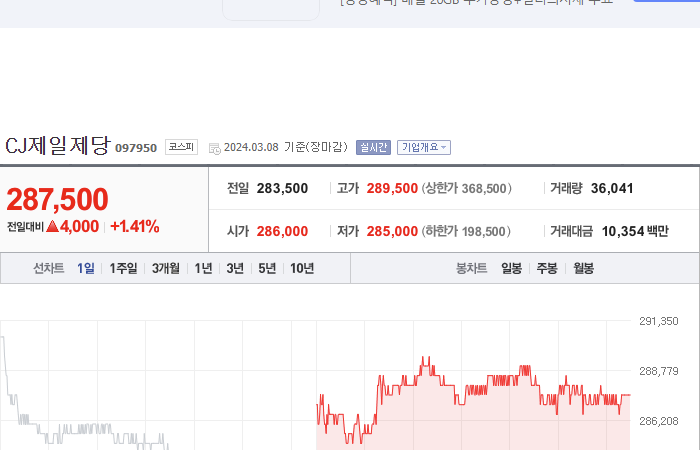 CJ제일제당 주가
