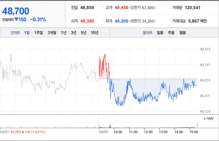 GS의 현재 주가는 48,850원이며 전일 대비 -6.42원 하락했습니다. GS의 대표 주주인 허창수(외 57인)은 지분의 53.23%를 소유하고 있습니다. GS는 석유 및 가스 기업으로 현재 주가는 48,850원입니다. GS의 시가 총액은 4조 5250억 원이고 발행 주식수는 92,915,378주입니다. 외국인 보유 비중은 24.27%이며 장중 거래량은 99,649주입니다. 매출액은 194,865억 원입니다.