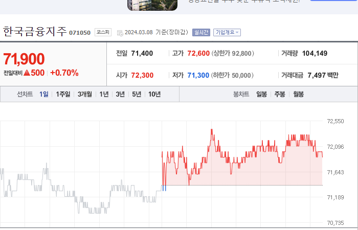 이 글은 한국금융지주 주가 전망과 목표 주가, 기업 정보에 대해 설명합니다. 주식 투자에서 중요한 것은 미래의 기업 가치를 예측하고 미리 움직이는 것입니다. 투자할 대상을 결정하기 전에 현재 기업의 상황과 수치를 검토하는 것이 필요합니다. 한국금융지주 주식의 주요 상황과 투자 정보를 확인하고 투자에 도움이 될 자료들을 모았으니 끝까지 읽어보시고 투자에 도움 받으시길 바랍니다.