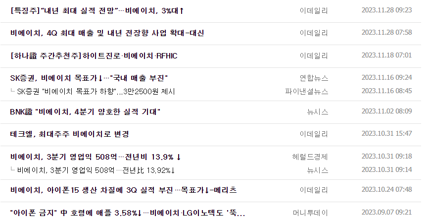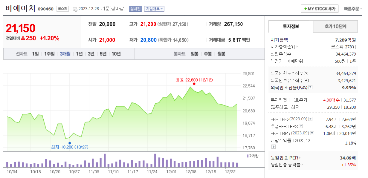 이 글에서는 비에이치 주가 전망과 목표 주가, 기업 정보에 대해서 설명합니다. 주식 투자에서 핵심은 미래의 기업 가치를 예상하고 선제적으로 움직이는 것입니다. 투자 대상을 결정하기 전에 현재 기업의 현황과 수치를 검토하는 것이 필요합니다. 비에이치 주식의 주요 현황과 투자 정보를 확인하시고 주식 투자에 도움을 줄 자료들을 모아 두었으니 투자 결정에 도움을 받으시길 바랍니다..
